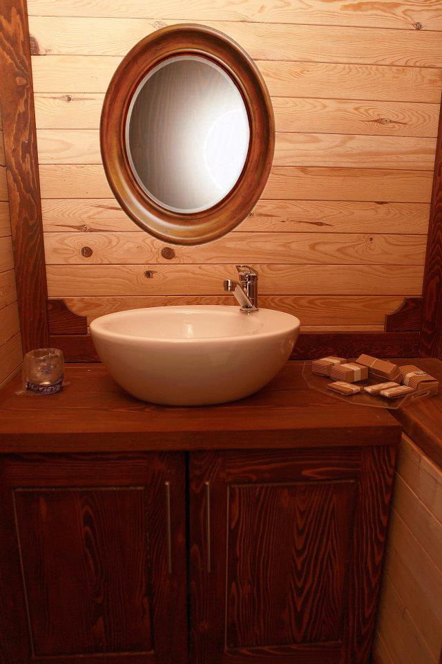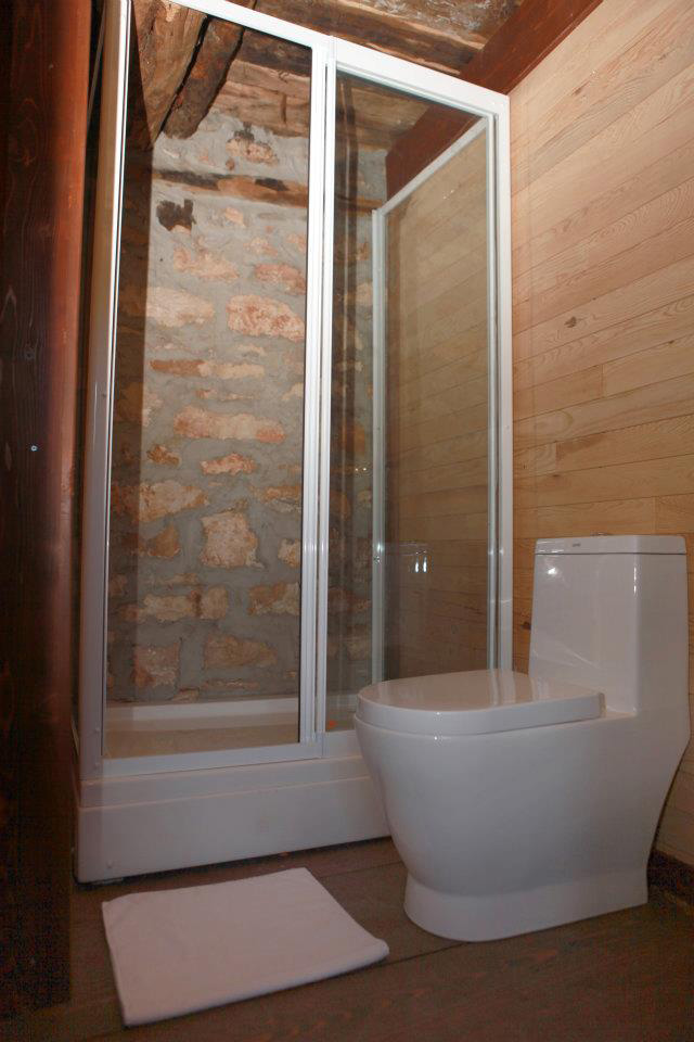 Wir haben diese Haeuser orginalgetreu mit Zedernholz restauriert und zum Bio Hotel gemacht.